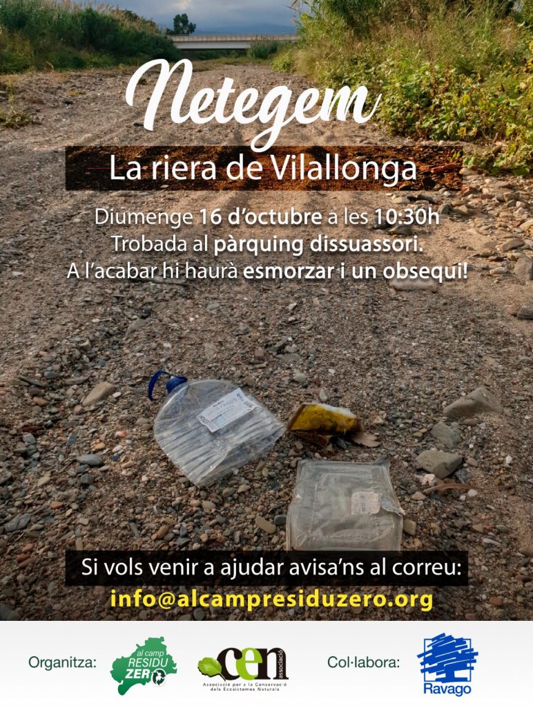 Aquest diumenge 16 d’octubre a les 10:30 h, anem a recollir residus a la Riera de la Selva a Vilallonga del Camp.