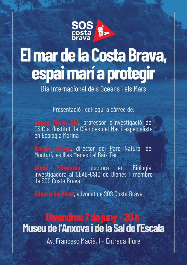 El proper 7/06 celebrem el Dia Internacional dels Oceans i els Mars l’acte ‘El mar de la Costa Brava, espai marí a protegir’.