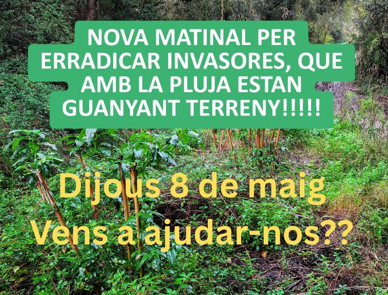 L’activitat es centrarà principalment en la identificació, registre i eliminació de l’espècie exòtica invasora anomenada raïm de moro (Phytolacca americana). Serà una activitat matinal de 10 a 13 h aproximadament.