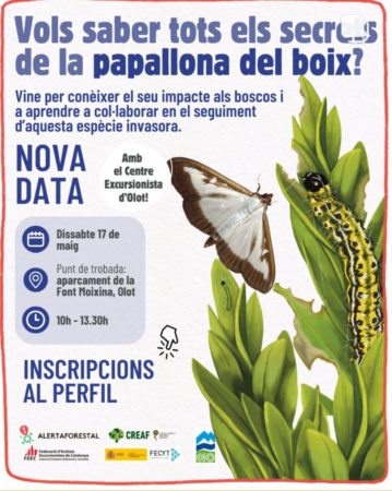T’agrada la natura i vols ajudar a fer seguiment de la salut forestal? Apunta’t al nou taller sobre l’eruga del boix que farem a Olot el dissabte 17 de maig!