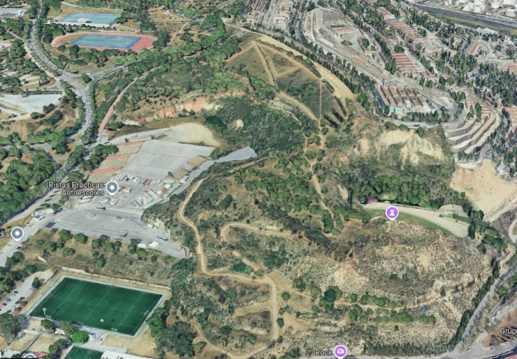 Àrea de bosc en l’Esplanada del Mirador de l’Ocell al costat del Cementiri.