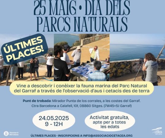 Amb motiu del Dia Europeu dels Parcs, t’oferim l’oportunitat de descobrir la fauna marina del Parc Natural del Garraf a través de l’observació d’aus i cetacis des del mirador de Punta dels Corrals.