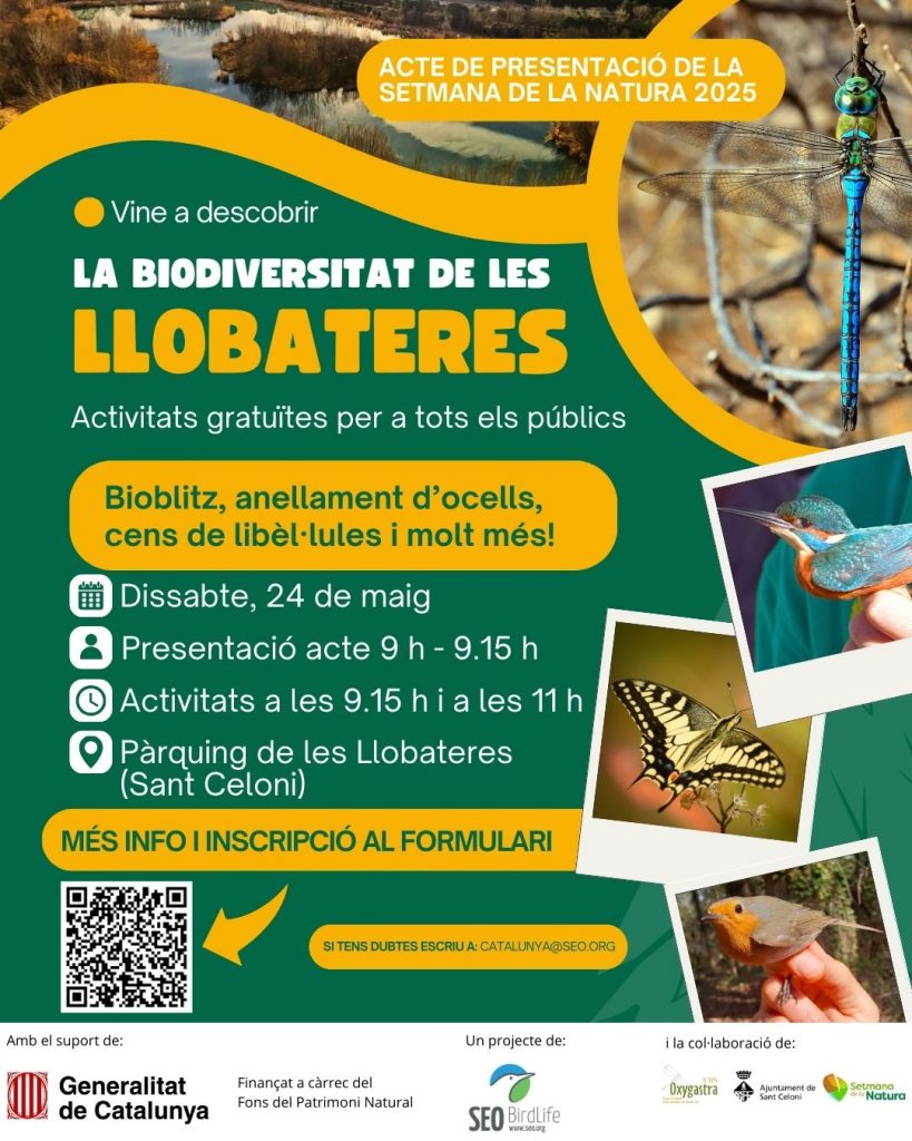 Portarem a terme diferents activitats gratuïtes i per a tots els públics, per posar en valor el gran potencial ambiental que té aquesta zona humida. Anellament d’ocells, censos de libèl·lules, un bioblitz i molt més!