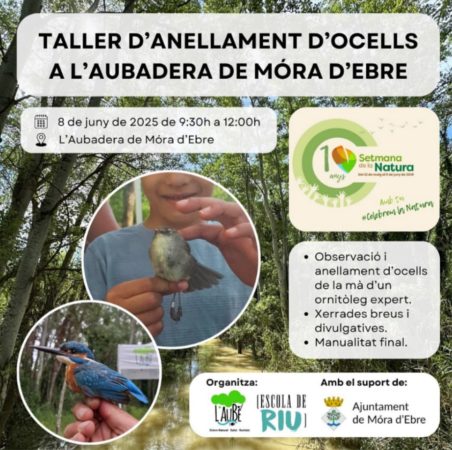 Realitzarem un taller pràctic per conéixer els treballs d’anellament científic d’ocells de la mà de l’ornitòleg expert Sergi Sales. Tindrem l’oportunitat de conéixer de primera mà els moixons que podem trobar als espais fluvials de l’Ebre, la seva diversitat i les seves característiques.