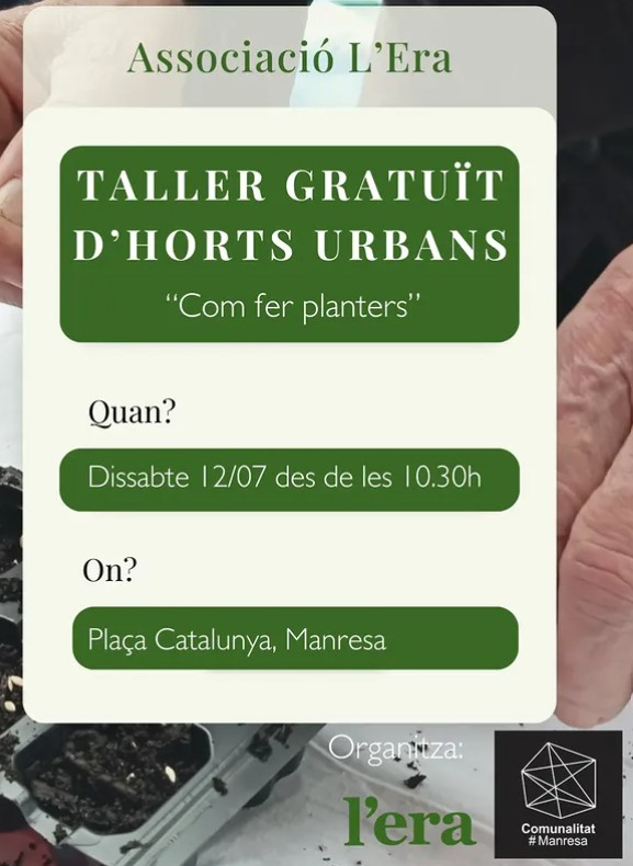 Aquest dissabte a les 10.30 h a la Plaça Catalunya, farem un taller gratuït per començar a donar forma al nou hort social del barri!