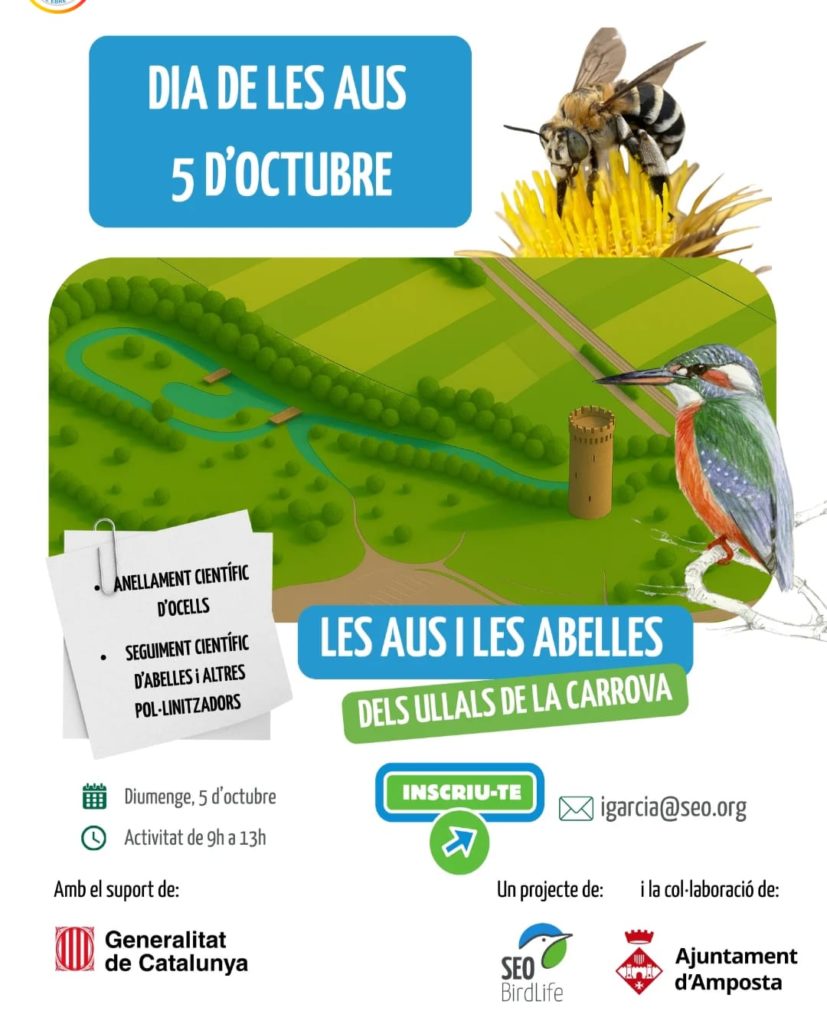 El proper diumenge 5 d'octubre us convidem a l'activitat d'anellament científic d'ocells i de seguiment d'abelles i d'altres pol•linitzadors.