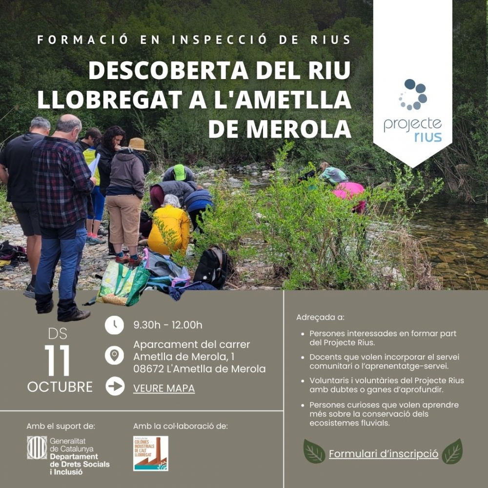 Vine a analitzar l'estat ecològic del riu Llobregat diumenge 12 d'octubre a L'Ametlla de Merola en l'activitat formativa per participar al Projecte Rius.