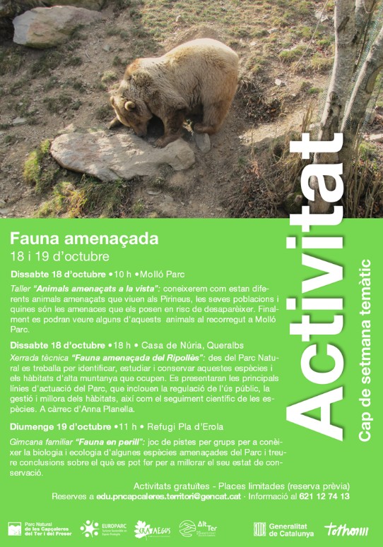 Dissabte 18 d’octubre 10 h Molló Parc. Taller “Animals amenaçats a la vista”