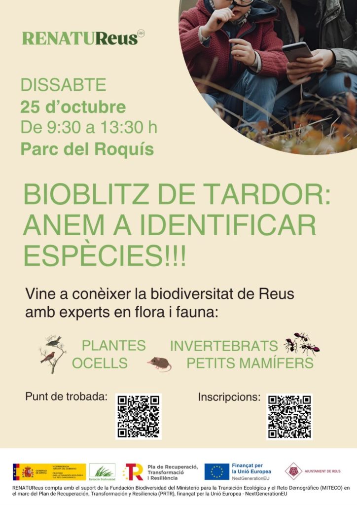 Un bioblitz és una activitat de ciència ciutadana oberta a tothom que té com a objectiu observar i identificar espècies de fauna o flora en un espai determinat, fer-ne el registre i compartir els resultats amb la comunitat científica. En aquest cas, el bioblitz que tindrà lloc dissabte dia 25 planteja 4 eixos temàtics: