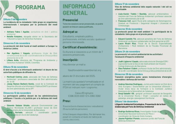 Inscripcions: fins al 31 d’octubre de 2025, escrivint a fda@fonsdefensaambiental.org.