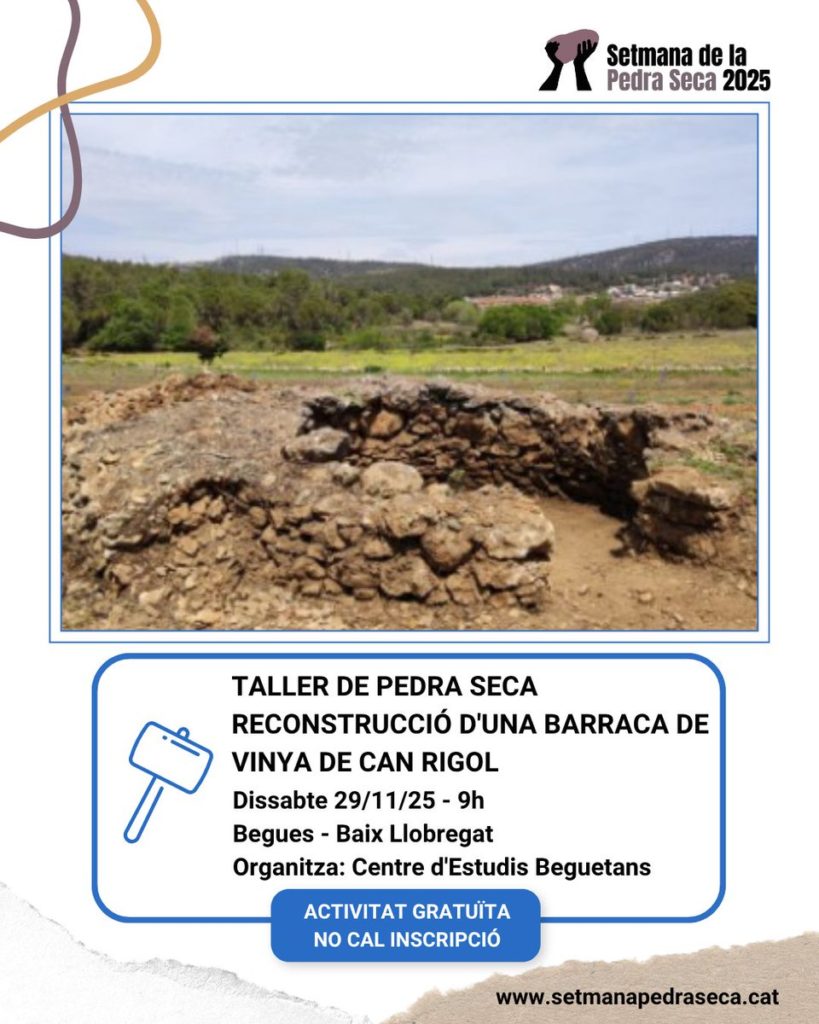 Aprofitant la continuació dels treballs de reconstrucció d’una de les barraques de vinya de la masia de can Rigol es realitzara un taller practic del treball de la pedra en sec per a la construcció de barraques. Cal portar guants, calçat i roba adequats per realitzar l’activitat.