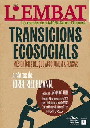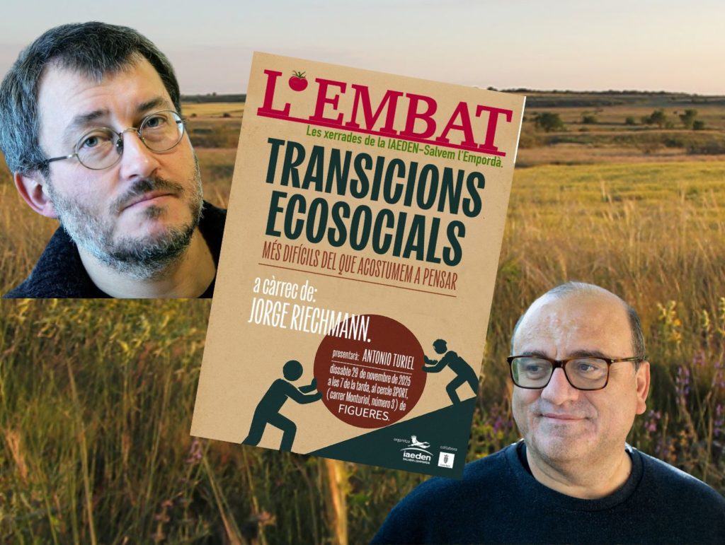 Xerrada de Jorge Riechmann sobre les transicions ecosocials, presentada per Antonio Turiel, el dissabte 29 de novembre a les 19 h al Cercle Sport de Figueres