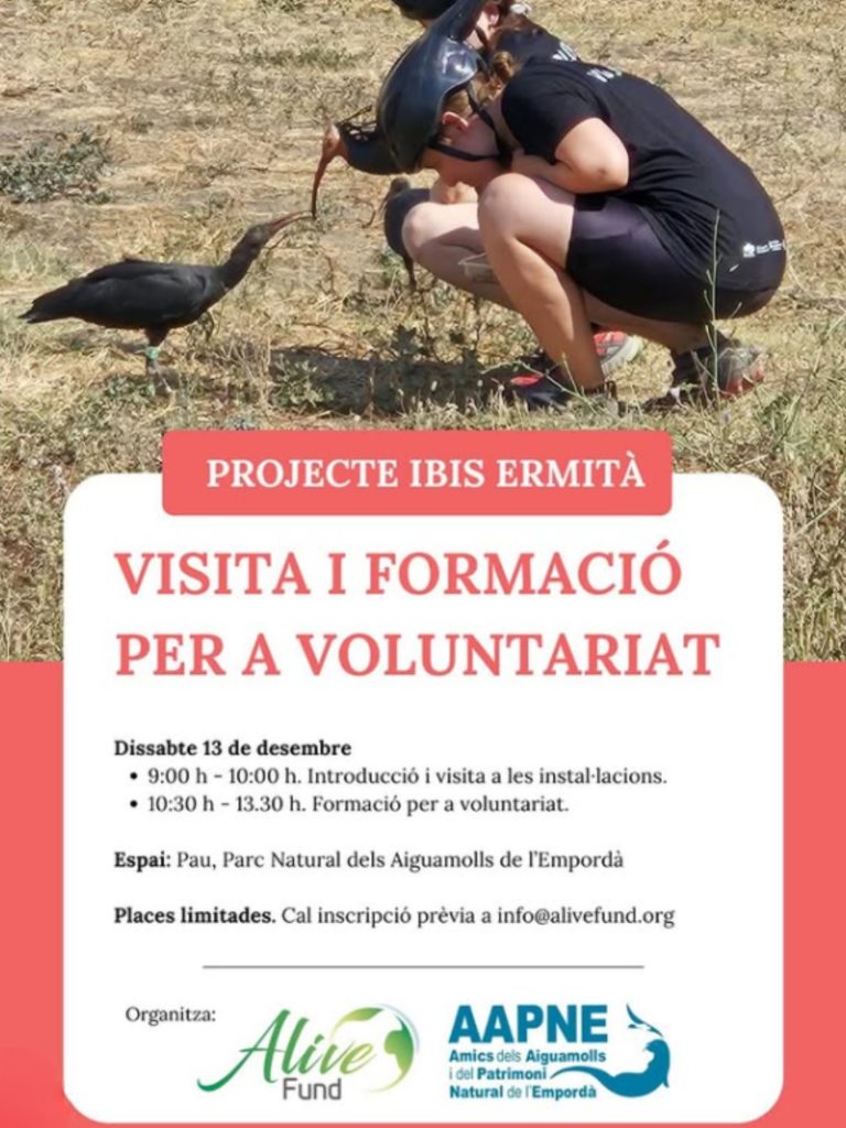 Vine a descobrir de prop el Projecte Ibis Ermità i aprendre com col·laborar en la conservació d’una espècie en perill d’extinció en una jornada formativa amb visita a les instal·lacions el dissabte 13 de desembre a Pau (Aiguamolls de l’Empordà),