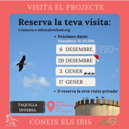Les visites es fan a la Torre d’en Mornau (Pau, Alt Empordà), ubicació del projecte i casa dels ibis empordanesos; on podreu descobrir com treballem per recuperar una de les espècies d’ocell més amenaçades del planeta.