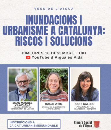 A Catalunya també hi ha urbanitzacions que s’han construït en zones inundables. Quins perills i alternatives hi ha? En parlarem a la pròxima sessió de Veus de l'Aigua, amb en Joan Manel Vilaplana (Director de l’Observatori de Georisc) i la Roser Ortiz (@plataforma.ribera.salines).