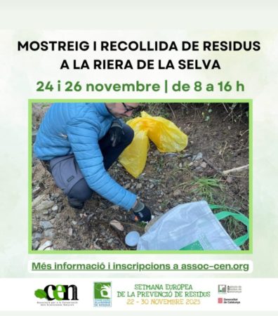 En el marc de la Setmana Europea de la Prevenció de Residus, organitzem un mostreig i una recollida a la riera de la Selva del Camp, els dies 24 i 26 de novembre.