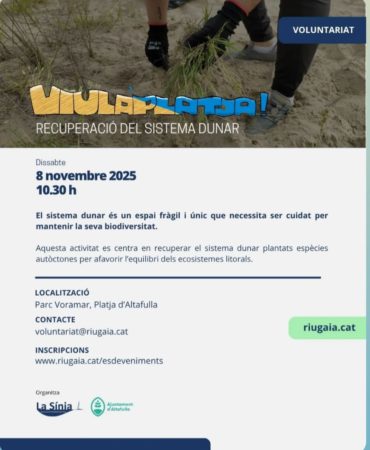 Participa aquest dissabte a la jornada de #VoluntariatAmbiental a la platja d’Altafulla ,