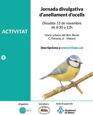 Dissabte de 8:30 a 12h, vine a descobrir l’anellament d’ocells als Horts urbans del Bon Recés.