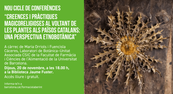 El pròxim 20 de novembre a les 18:00 h segueix el cicle de conferències del CFL amb una xerrada de Maria Orriols i Fuencisla Cáceres, del Laboratori de Botànica–Unitat Associada CSIC de la Facultat de Farmàcia i Ciències de l’Alimentació de la Universitat de Barcelona..