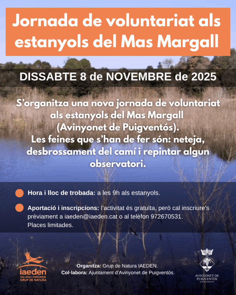 Organitza: Grup de Natura IAEDEN. Col·labora: Ajuntament d’Avinyonet de Puigventós.
