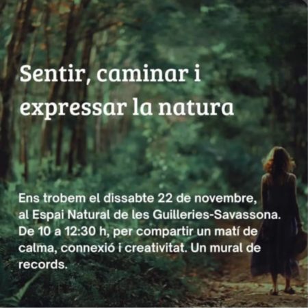 Sentir, caminar i expressar la natura T’esperem el dissabte 22 de novembre, de 10 a 12:30 h, per compartir un matí de calma, connexió i creativitat. Un mural de records.