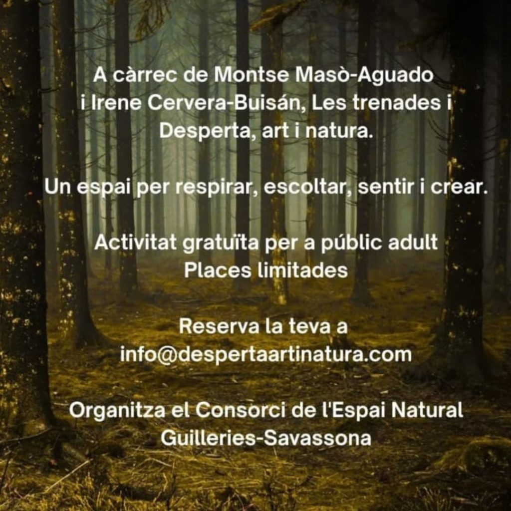 Aquesta activitat forma part d’un cicle de salut i natura que té lloc al novembre a l’Espai Natural de les Guilleries-Savassona. En aquest cicle, s’han programat quatre experiències guiades per persones expertes en aquests àmbits que posen en valor el poder transformador de la natura per millorar el nostre benestar físic, emocional i social.