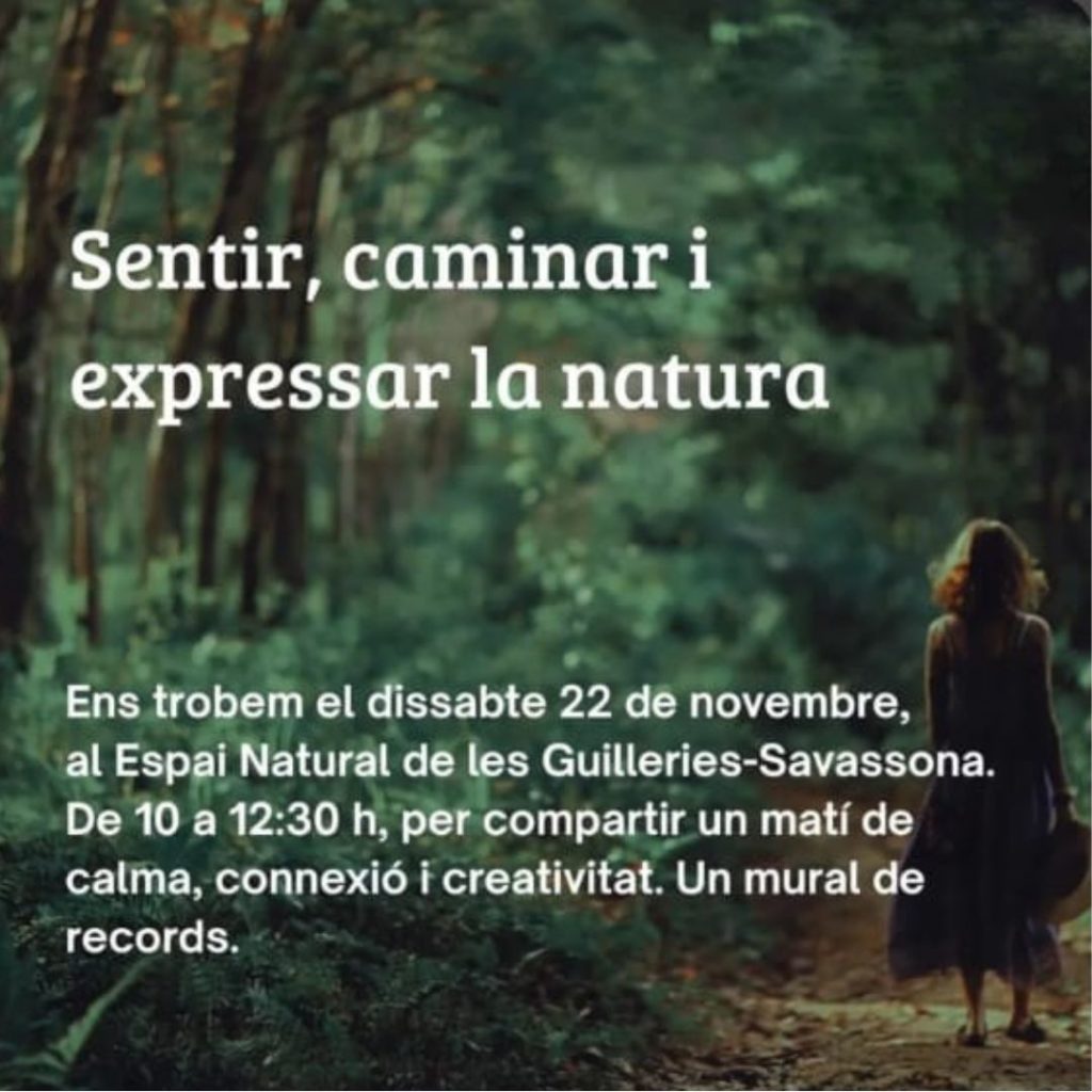Sentir, caminar i expressar la natura T’esperem el dissabte 22 de novembre, de 10 a 12:30 h, per compartir un matí de calma, connexió i creativitat. Un mural de records.