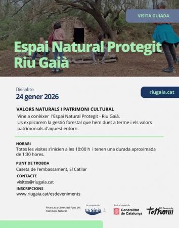 Farem un recorrecut per l’Espai Natural Protegit – Riu Gaià per explicar-vos la gestió forestal que durem a terme i els valors patrimonials d’aquest entorn. Dia: 24/01/2026 Hora: 10 h Punt de trobada: Caseta de l’embassament, el Catllar Participació gratuïta amb grups reduïts. visites@riugaia.cat