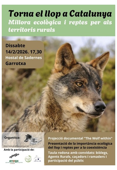 La plataforma Grup Llop Catalunya organitza aquesta taula rodona a Sadernes, a l’Alta Garrotxa, en la que també hi participaran Garrotxa Viva, Resilience Earth, l’Associació naturalista i ecologista de la Garrotxa i Salvem Les Valls.