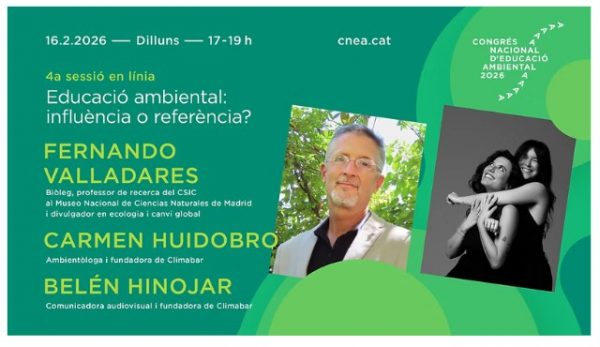 Educació ambiental: influència o referència?, amb Fernando Valladares (CSIC), Carmen Huidobro i Belén Hinojar (ClimaBar). Sessió en línia ?Inscripció per les sessions en línia en aquest enllaç