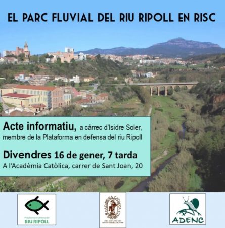 Us convidem a l’acte informatiu del “Parc Fluvial del RIU RIPOLL en RISC” del proper divendres 16 de gener a la tarda, anotau a l’agenda i vine!