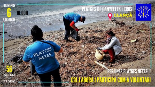 56ª Neteja del Litoral diumenge 6 de novembre 2022 10:00h fins 12:00h Platja de Canyelles i Cros Llançà Tothom Voluntariat Platges Netes Llançà Contacte: platgesnetes@gmail.com Informació Ubicació Aquest diumenge dia 6 tornem a netejar de residus plàstics les platges de Canyelles i Cros. Aquest proper diumenge tornarem a netejar les platges del nostre Paradís, uneix-te a nosaltres Compartir: Platja de Canyelles i Cros Platja de Canyelles i Cros Llançà Alt Empordà