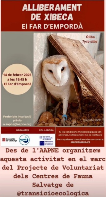 Organitzat en el marc del projecte de voluntariat dels centres de fauna salvatge per l’Aapne i el Centre de Fauna dels Aiguamolls de l’Empordà