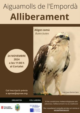 Aquest exemplar d’aligot (a la imatge del cartell), ha estat recuperant-se al Centre de Fauna dels Aiguamolls de l’Empordà.