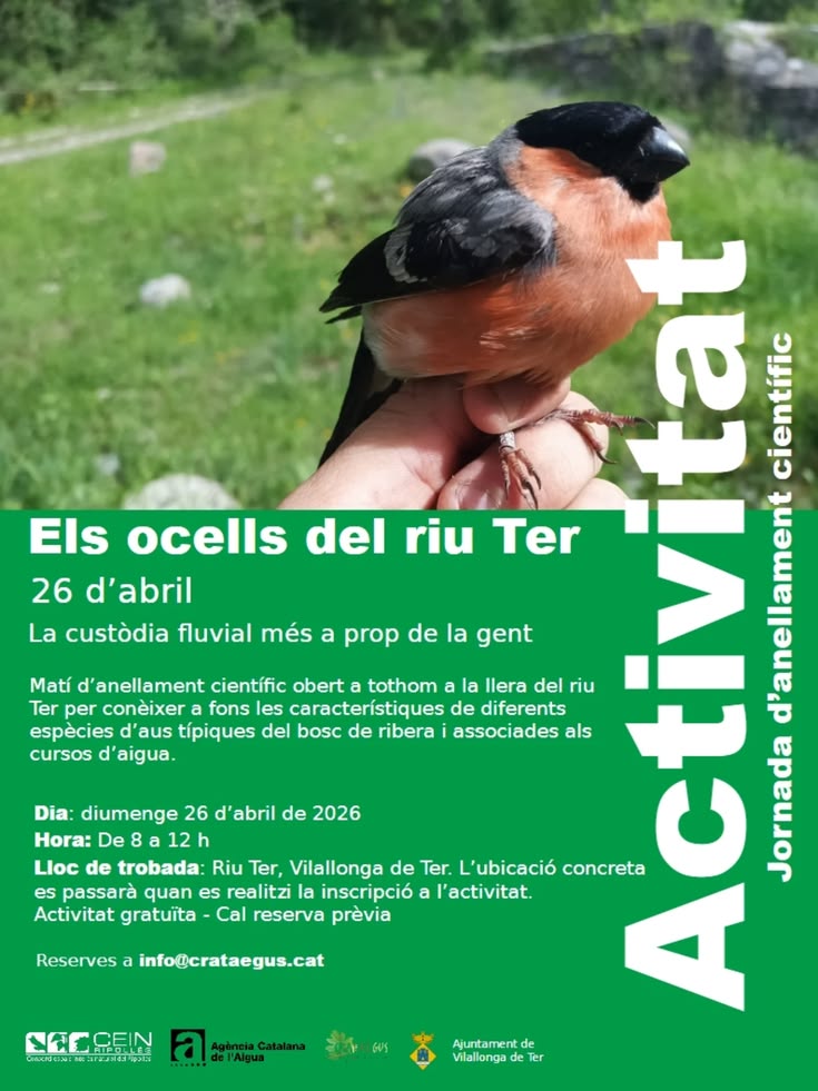 El proper diumenge 26 d’abril tindrem el plaer de tenir a l’anellador @guhill94 per a conèixer de ben a prop les espècies d’ocells que habiten el bosc de ribera del municipi de Vilallonga de Ter