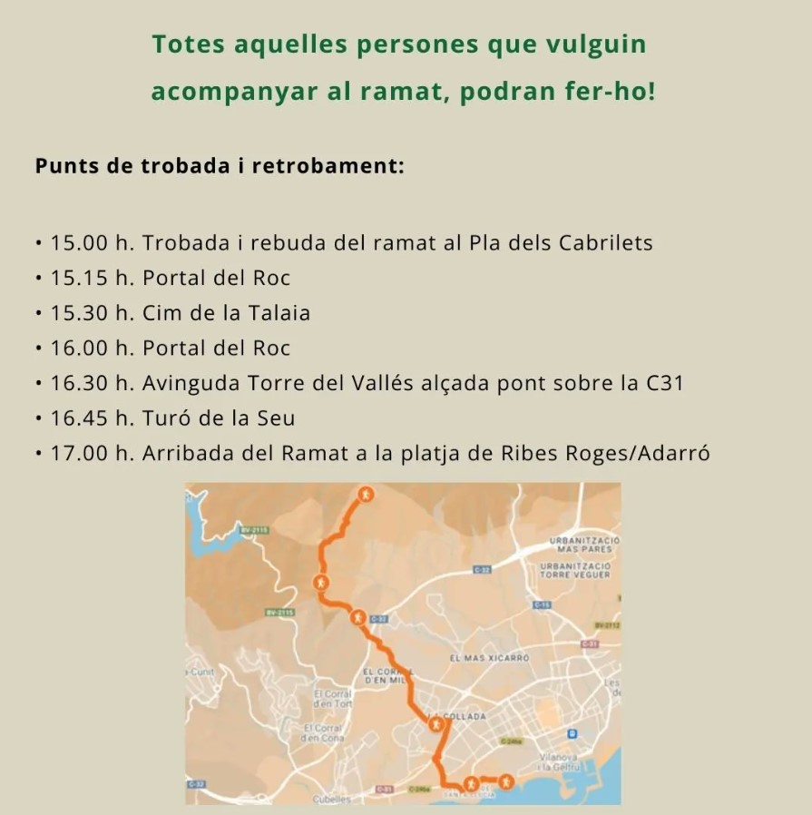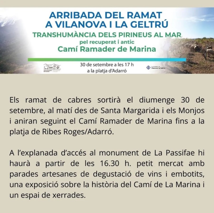 Dissabte arriba a la platja d’Adarró de #VNG el ramat de cabres lleteres del pastor Dainel Giraldo L'associació Camí Ramader de Marina, de la Cerdanya al Penedès impulsa el projecte "Camins de vida, transhumància, patrimoni i territori"