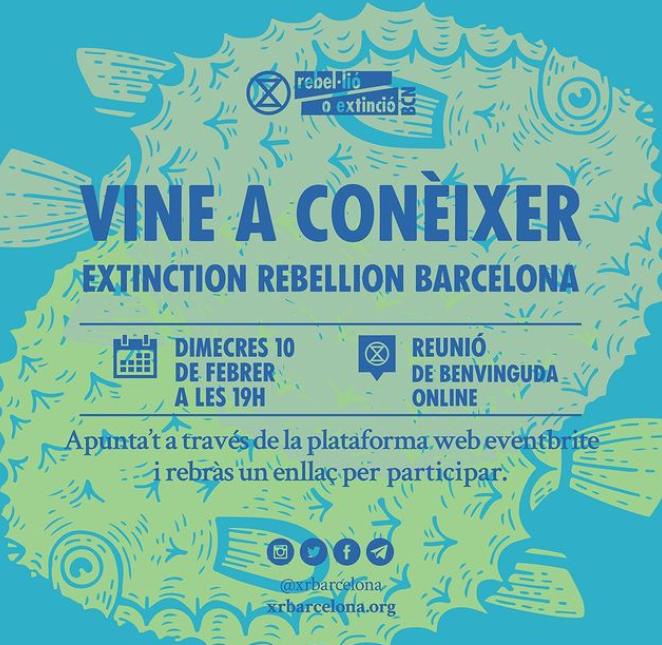 Et convidem a conèixer el col·lectiu internacional Extinction Rebellion, quines són les nostres demandes i els nostres principis i valors, com actuem a través d’accions de desobediència civil no violenta, i com pots unir-te a el node de Barcelona.