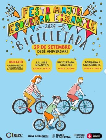Torna la Bicicletada de l’Esquerra de l’Eixample, un pla perfecte per compartir una pedalada en família. Estem molt emocionats/des d’anunciar un any més una activitat que no et voldràs perdre: la desena edició de la Bicicletada Familiar de la Festa Major de l’Esquerra de l’Eixample, organitzada pel BACC!