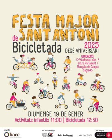 A les 12:15 h donarem pas a la ja tradicional Bicicletada de la Festa Major del barri de Sant Antoni que enguany celebra el seu desè aniversari! La ruta d’uns 5 km està pensada perquè tothom hi pugui participar i sortirà amb puntualitat a les 12:30 h.