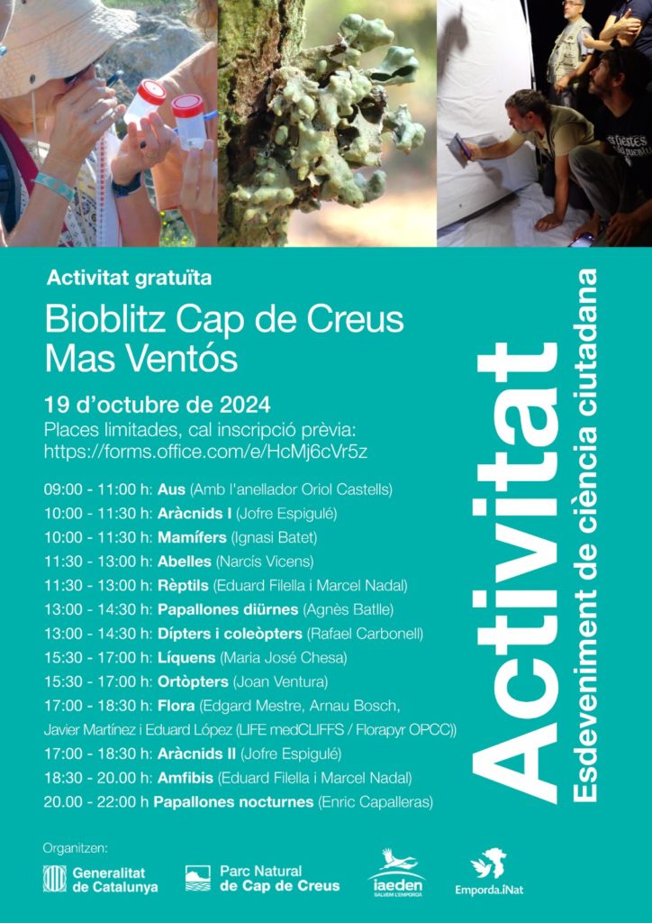 Dins les activitats del Cap de Creus Autumn Weekend (CCAW) que es faran del 18 al 20 d’octubre, el dissabte dia 19 es durà a terme un nou bioblitz al Cap de Creus, a la zona del Mas Ventós, del municipi del Port de la Selva, per tal de fer un inventari de la biodiversitat d’aquesta zona.