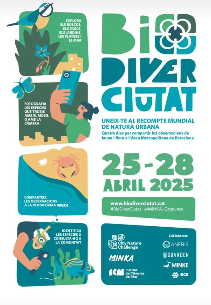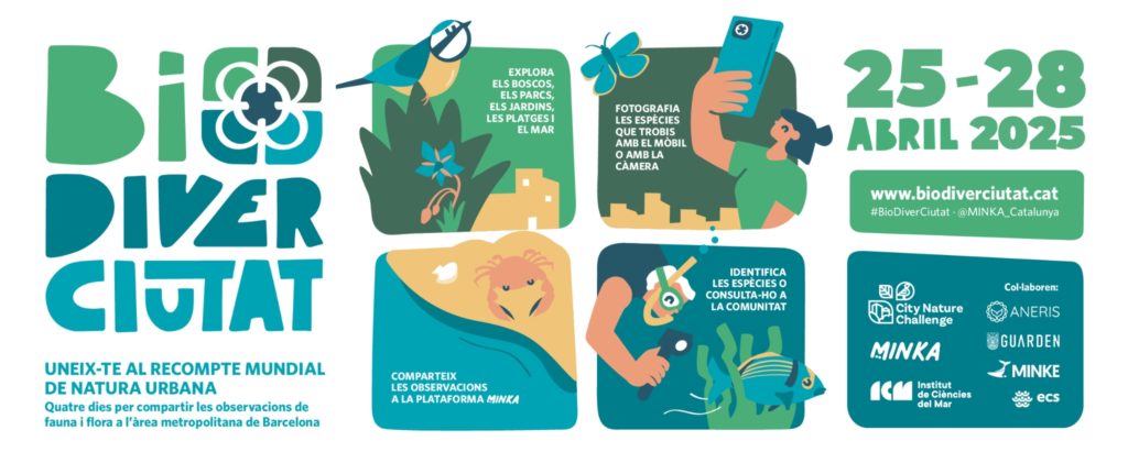 Uneix-te al recompte mundial de natura urbana! Del 25 al 28 d’abril de 2025 participa en l'esdeveniment de ciència ciutadana BioDiverCiutat. Explora els entorns naturals de l'àrea metropolitana, com parcs, jardins, boscos, aiguamolls, platges i el mar. Fotografia les espècies de flora i fauna que hi trobis i comparteix-les a la plataforma MINKA. La comunitat experta t'ajudarà a identificar el que no sàpigues.