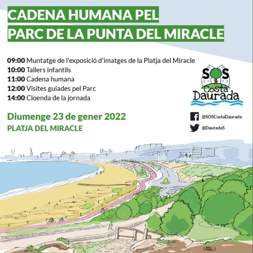 SOS COSTA DAURADA ha organitzat pel diumenge 23 de gener per reclamar la creació del Parc de la Punta del Miracle dins de la campanya que estem duent a terme d’OBRIM LA CIUTAT AL MAR !!