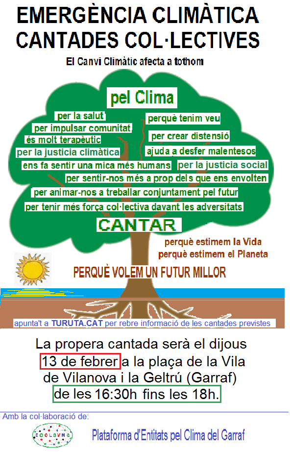 Aprendre cançons amb continguts mediambientals i de canvi de model de societat. Cantades públiques obertes a tothom!