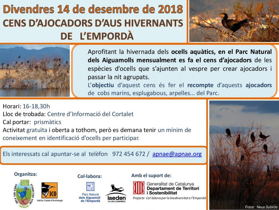 Aprofitant la hivernada d’ocells aquàtics, en el Parc Natural dels Aiguamolls mensualment es fa el cens d’ajocadors de les espècies d’ocells que s’ajunten al vespre per crear ajocadors i passar la nit agrupats.