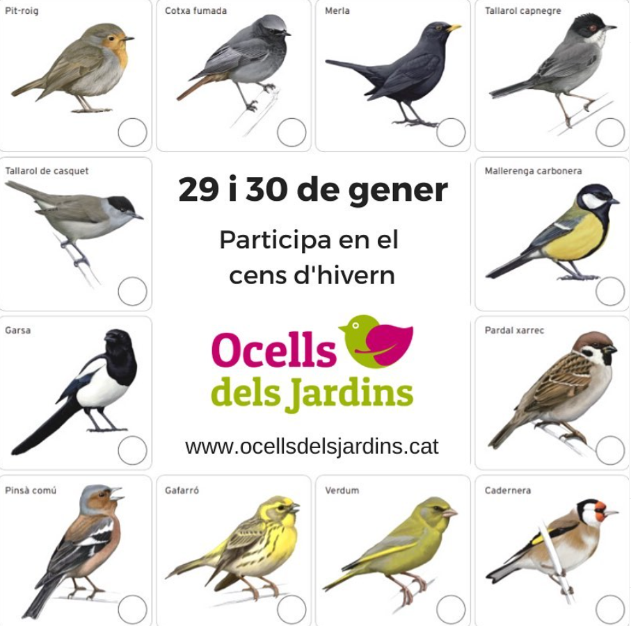 Aquest cap de setmana fem el cens d’hivern d’Ocells dels Jardins, un projecte de ciència ciutadana en el que tothom pot participar. Només has de donar d’alta el teu jardí o un parc proper i comptar els ocells que vegis durant aquest dissabte o diumenge.