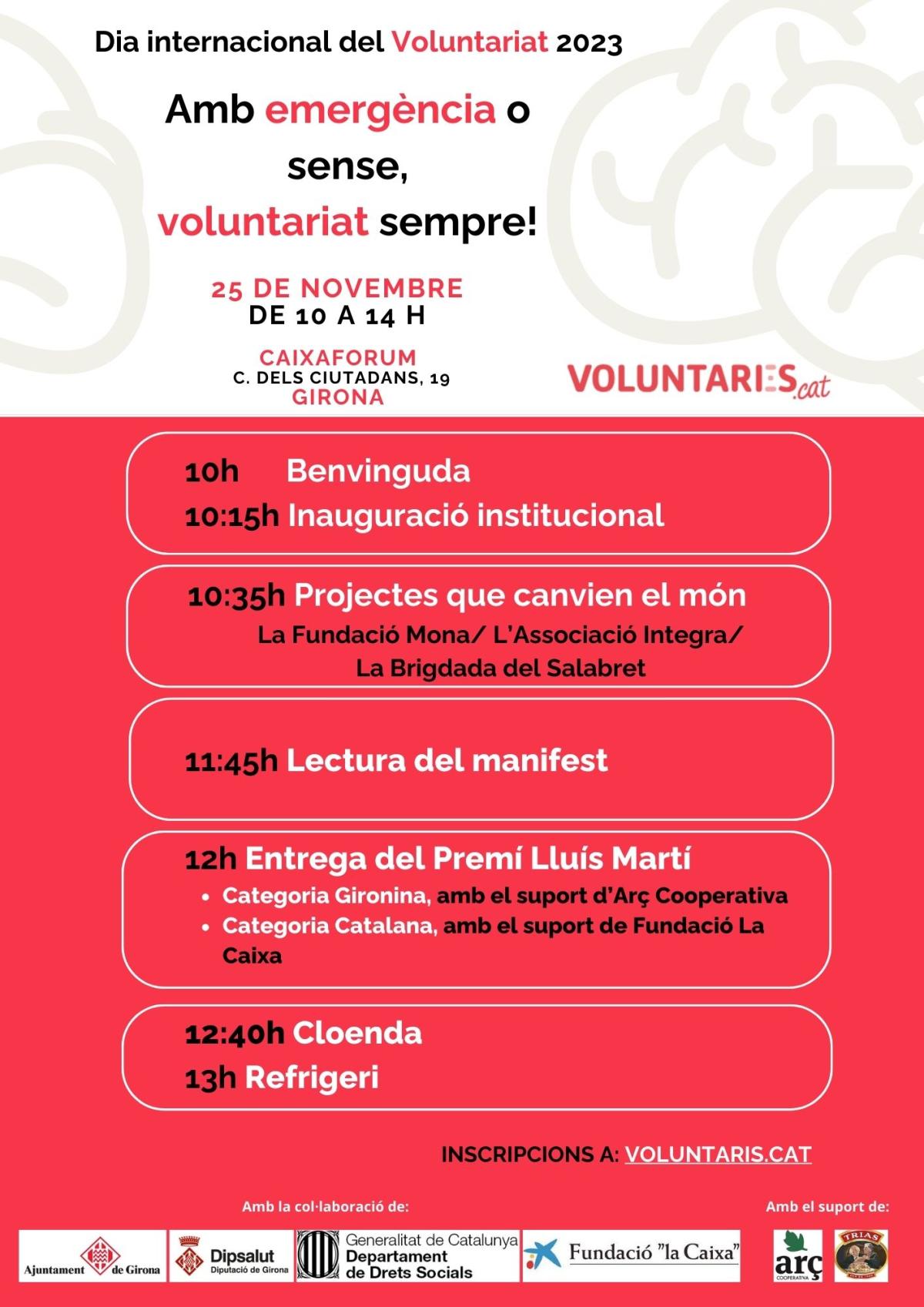 Dissabte 25 de novembre la Federació Catalana de Voluntariat Social (FCVS) celebra el Dia Internacional del Voluntariat a Girona.