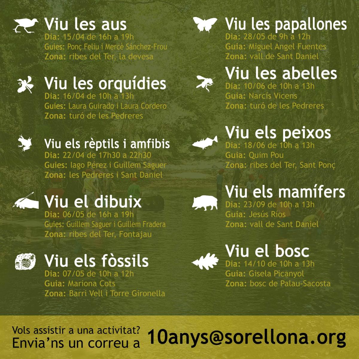 Si tens ganes d’assistir a alguna activitat envia’ns un missatge a 10anys@sorellona.org
