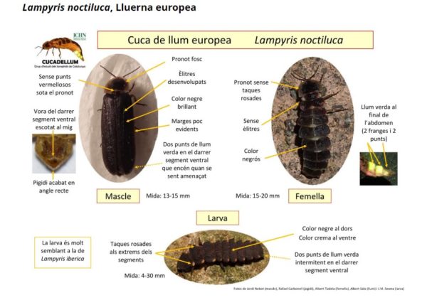És molt important fer més d’una fotografia i alguna amb flaix perquè es vegin bé els detalls de la cuca de llum, i es pugui identificar o verificar l’espècie.