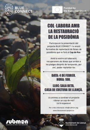 Vols saber més sobre el projecte Blue Connect i com pots col·laborar en la restauració de la posidònia? T’esperem a la reunió informativa on presentarem el projecte i explicarem tots els detalls sobre les accions de replantació de feixos de posidònia que durem a terme al Cap de Ras.