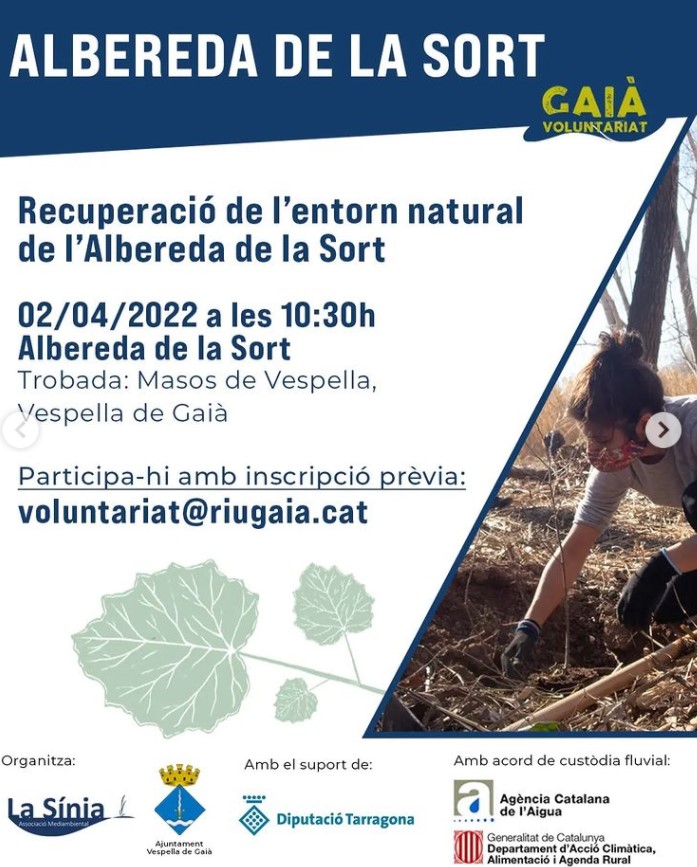 Vine el proper dissabte, 2 d’abril, a l’Albereda de la Sort de Vespella de Gaià, jornada de Voluntariat Ambiental en aquest espai en custòdia fluvial.